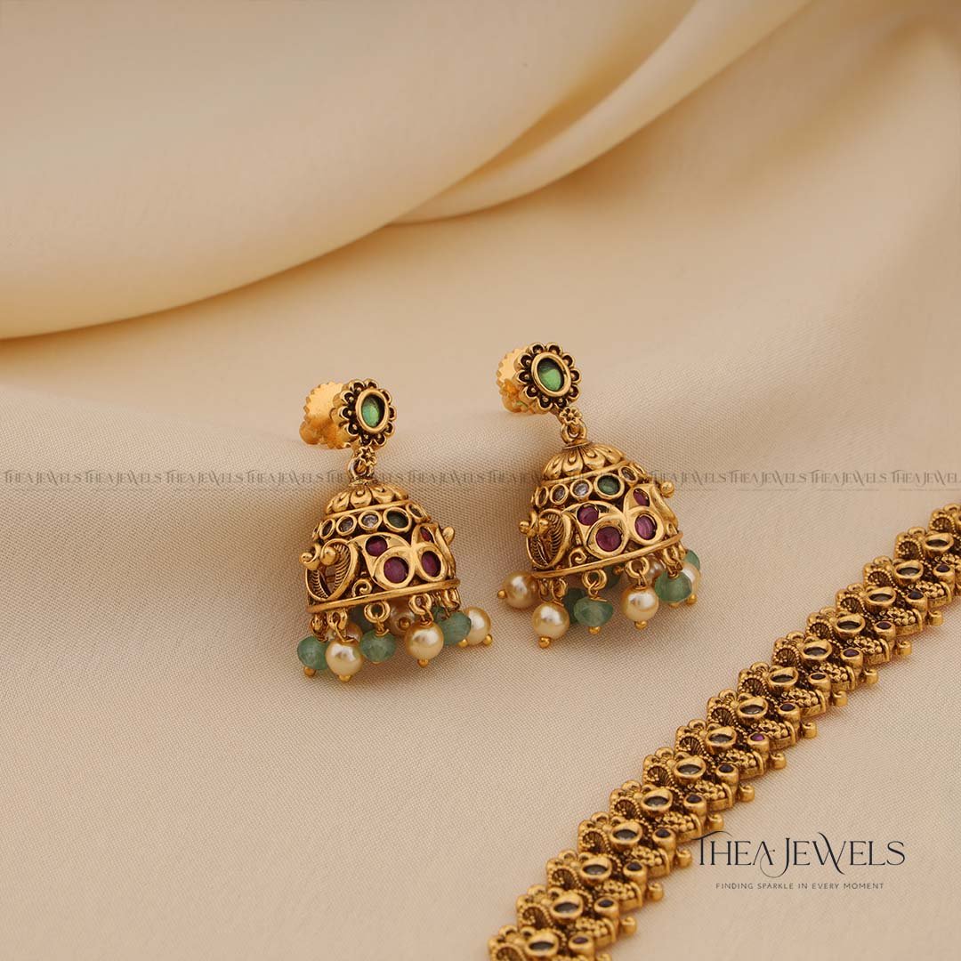 - Product Finish : Antique Gold Finish, Red Stones, Green Stones, White Stones, Green Beads, Pearls
