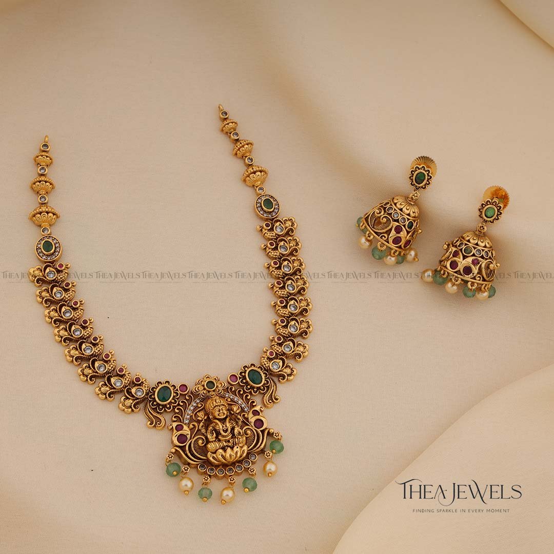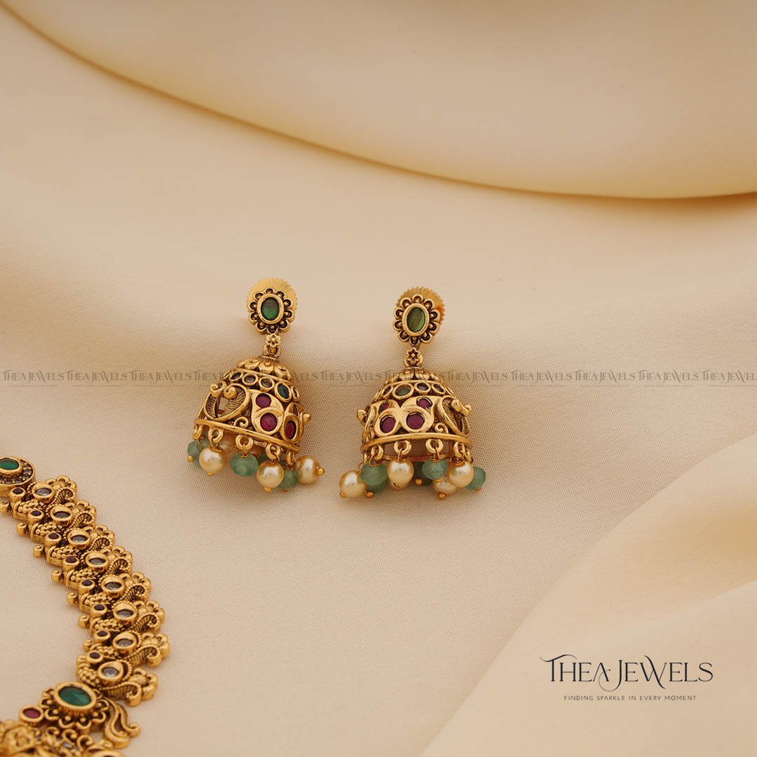 - Product Finish : Antique Gold Finish, Premium stones, White Stones, Red Stones, Green Stones, Green Beads, Pearls