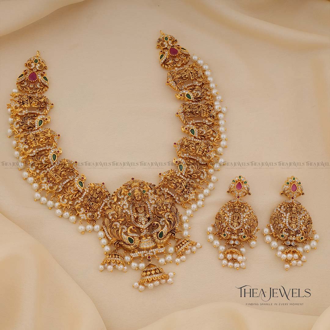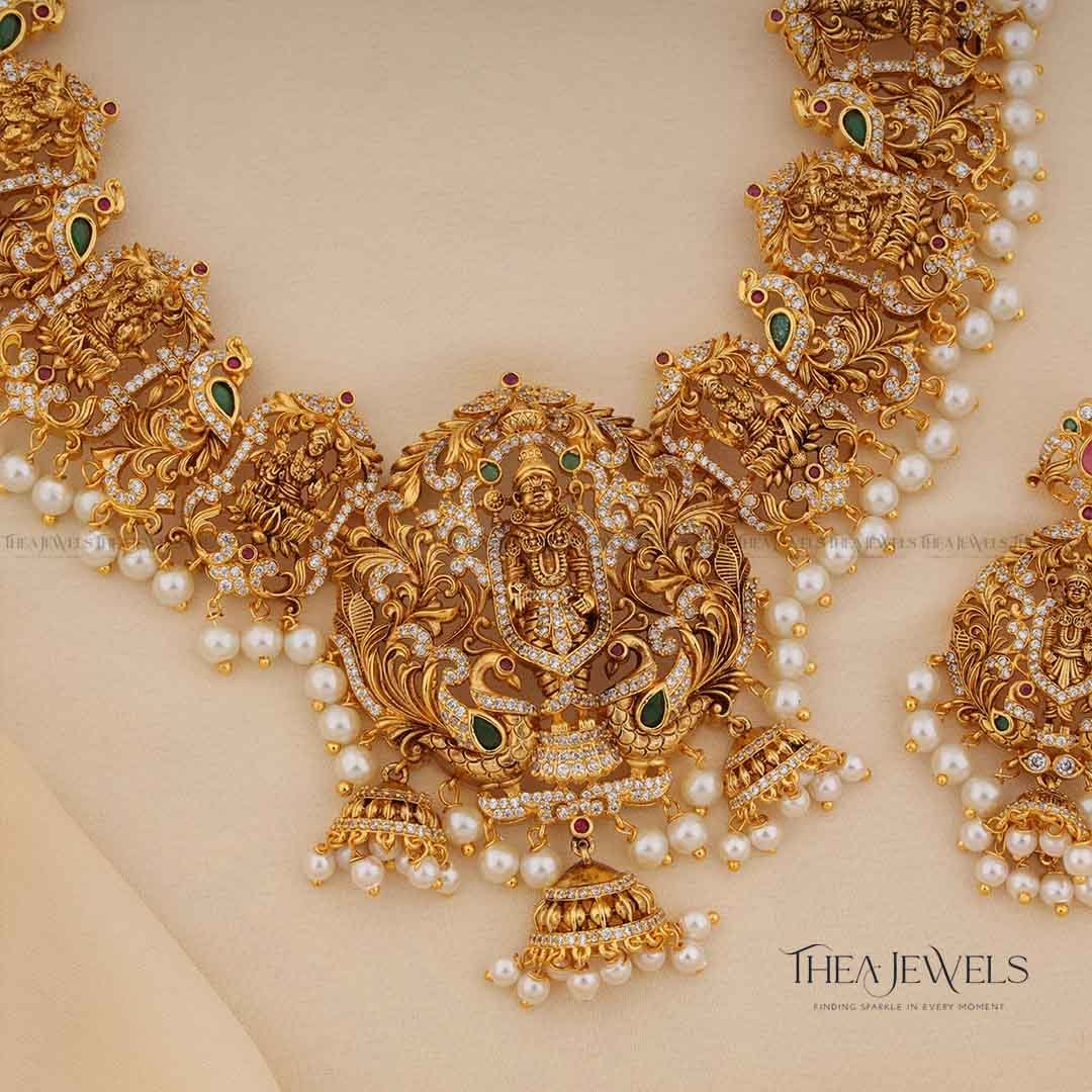 - Product Finish : Antique Gold Finish, Premium Detailing and Intricate Workmanship, Green Stones, White Stones, Red Stones, Pearls