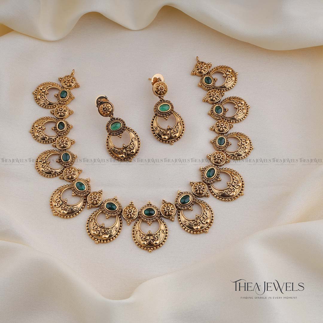 - Product Finish : Antique Gold Finish, Red Stones, Green Stones