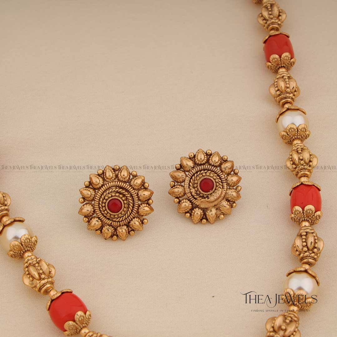 - Product Finish : Rajwadi Antique Gold Finish, Red Stones, Pearls, Corals