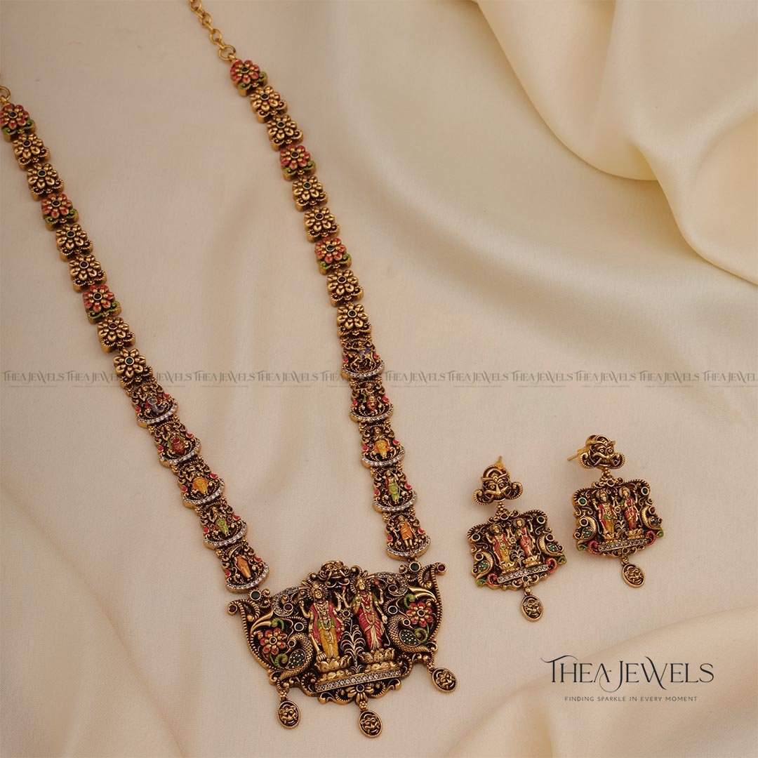 - Product Finish : Dark Antique Gold Finish, Red Stones, Green Stones, White Stones, Premium Enamel Painting Intricate Detailing Work