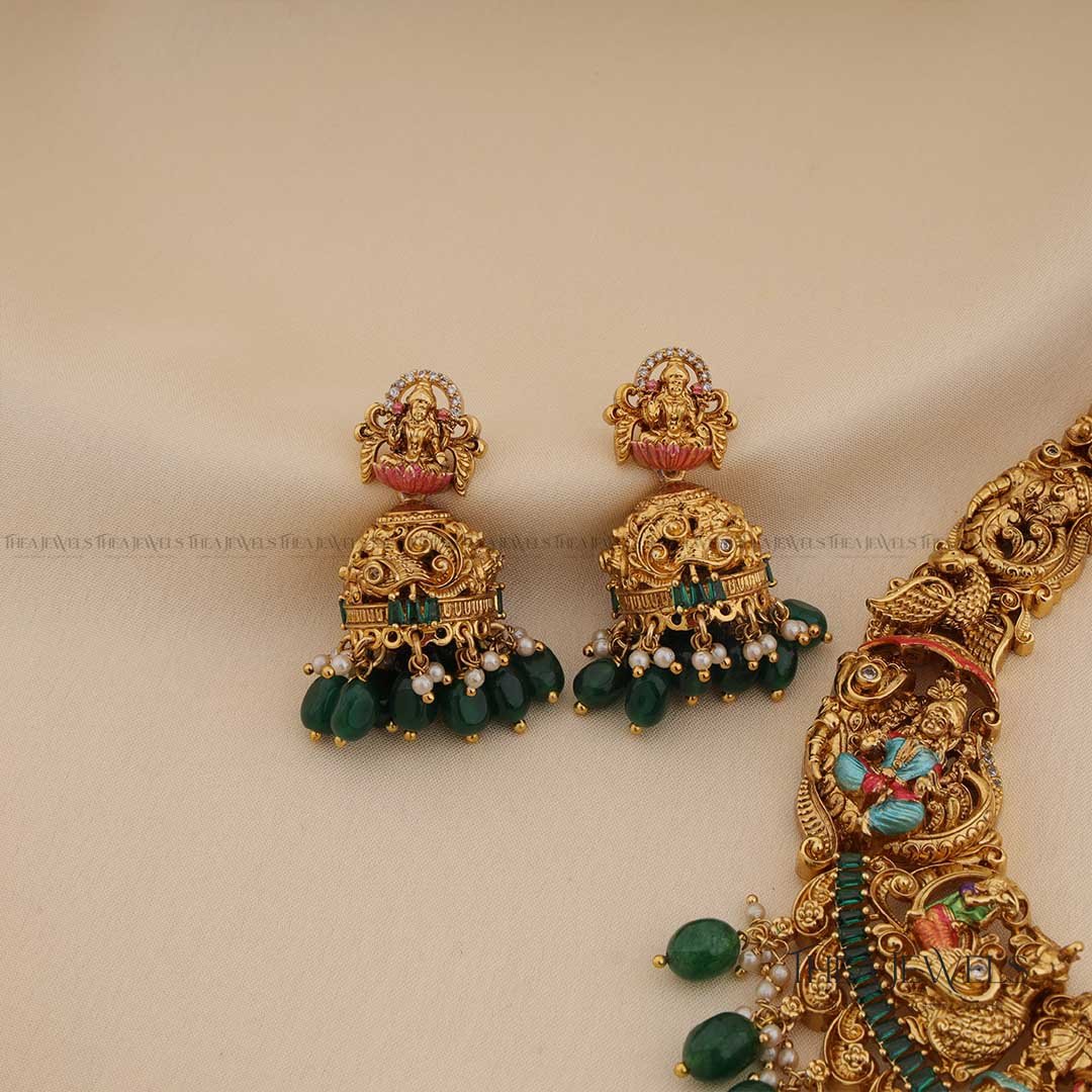 - Product Finish : Antique Gold Finish, Premium Detailing and Intricate Workmanship, Premium Enamelling Work, Green Stones, Pearls, Green Beads, Pearls