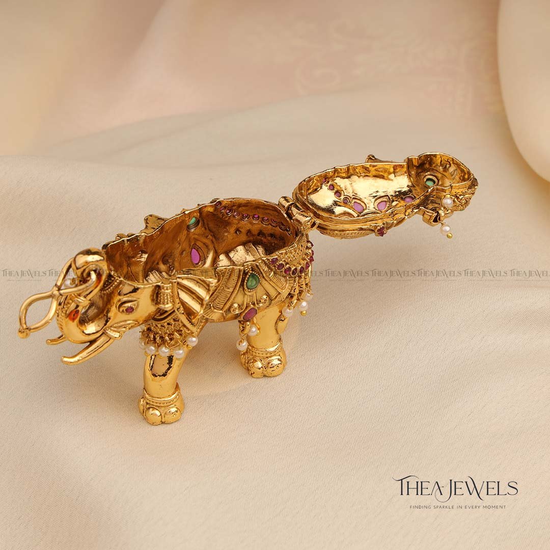 - Product Finish : Antique Gold Finish, Premium Workmanship, Green Stones, Red Stones, Pearls