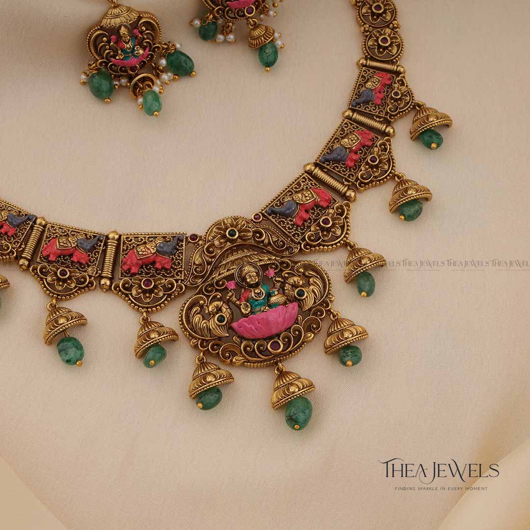 - Product Finish : Dark Antique Gold Finish, Red Stones, Green Stones, Green Beads, Pearls