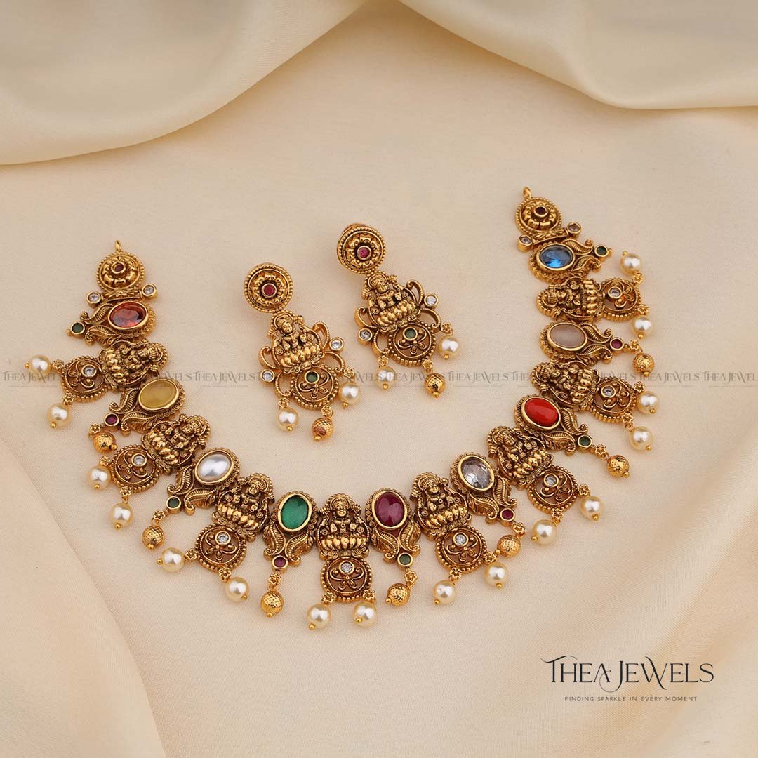 - Product Finish : Antique Gold Finish, Navratan Stones, Gold Beads, Pearls