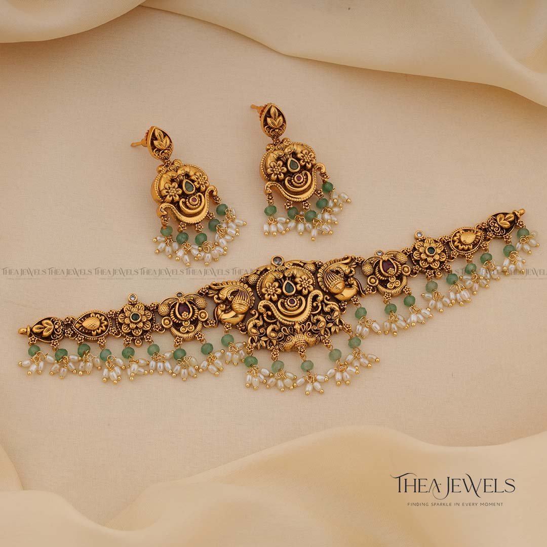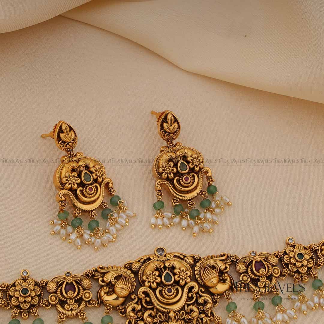- Product Finish : Antique Gold Finish, Green Stones, Red Stones, Pearls, Green Beads