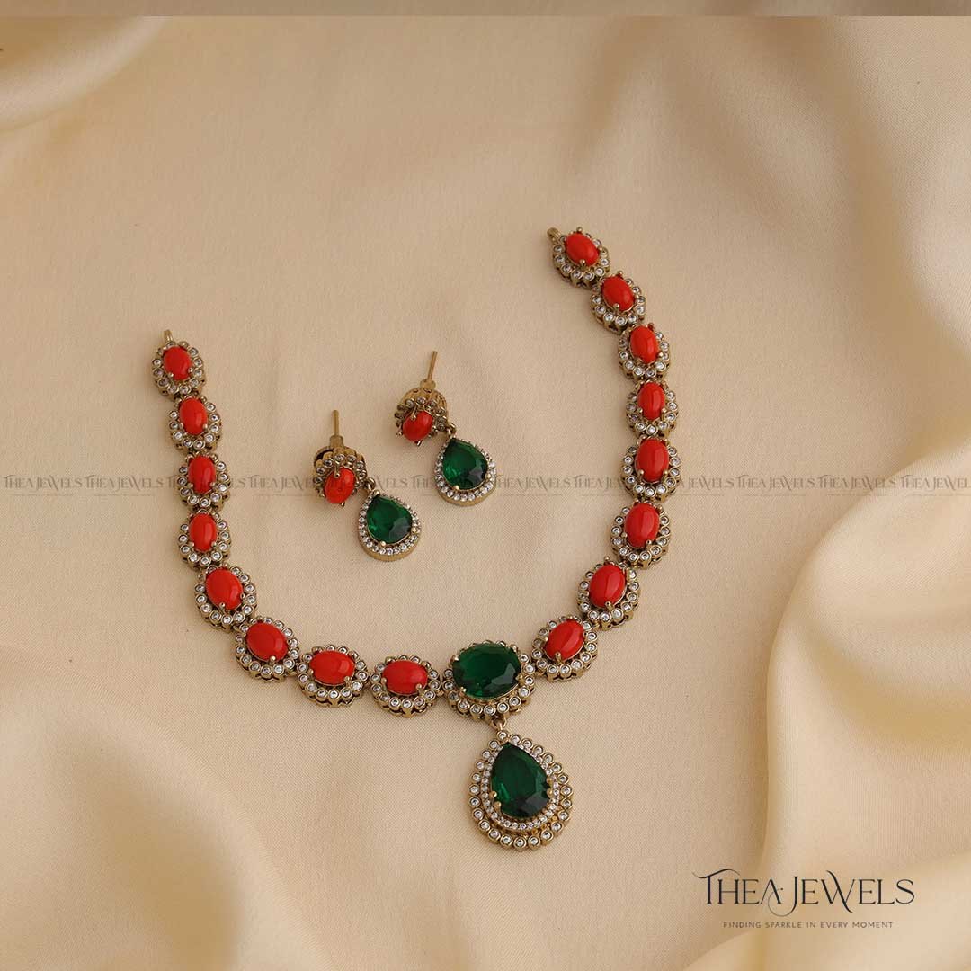 - Product Finish : Mehndi Victorian Finish, White Stones, Coral Red Stones, Green Stones, White Stones