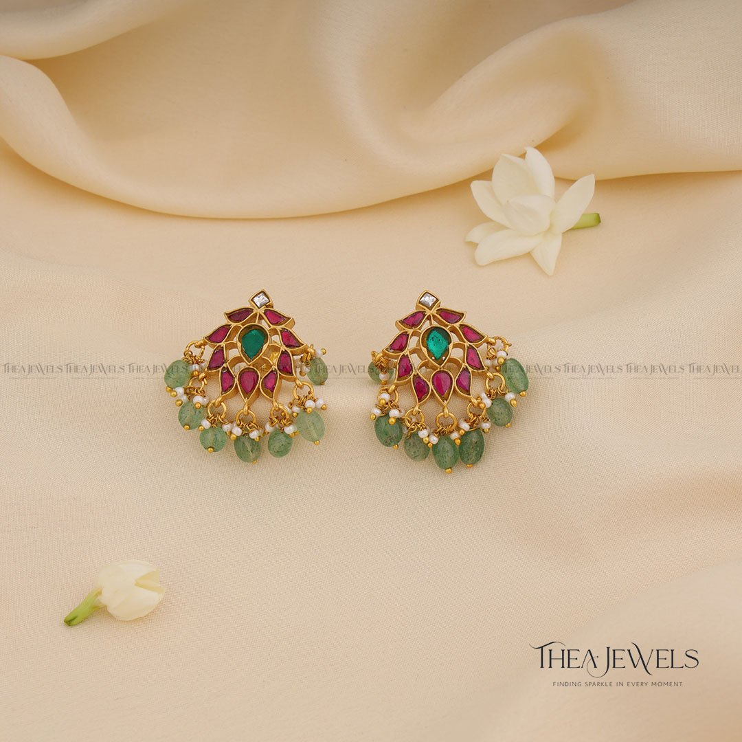 - Product Finish : Antique Gold Finish, Jadau Stones. Red Stones, Green Stones, White Stones, Pearls, Green Beads