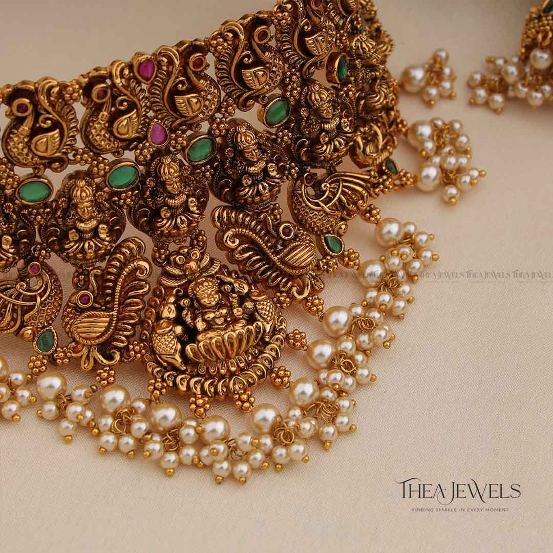 - Product Finish : Antique Gold Finish, Red Stones, Green Stones, Pearls