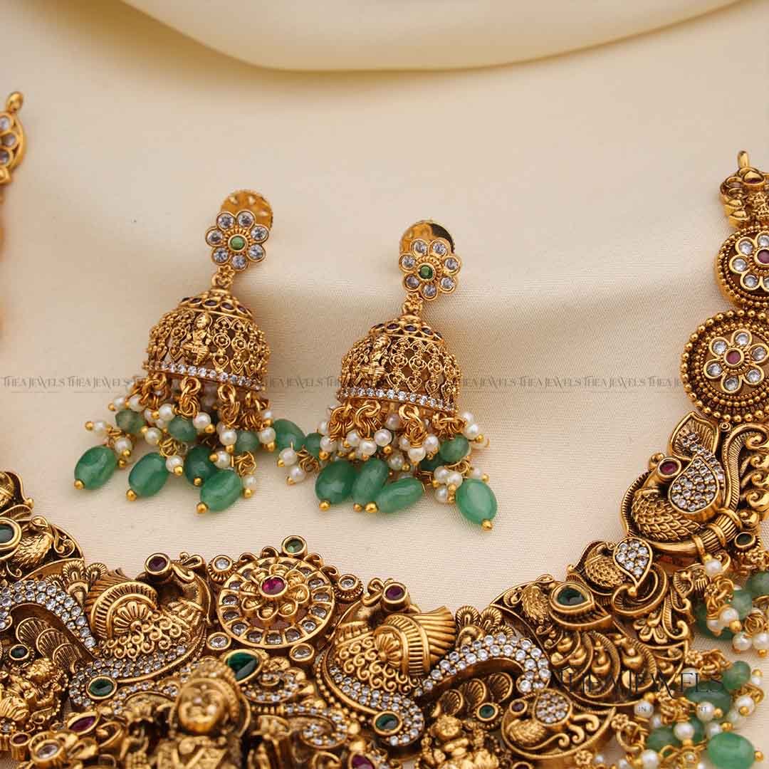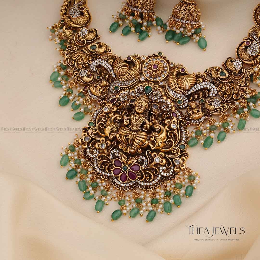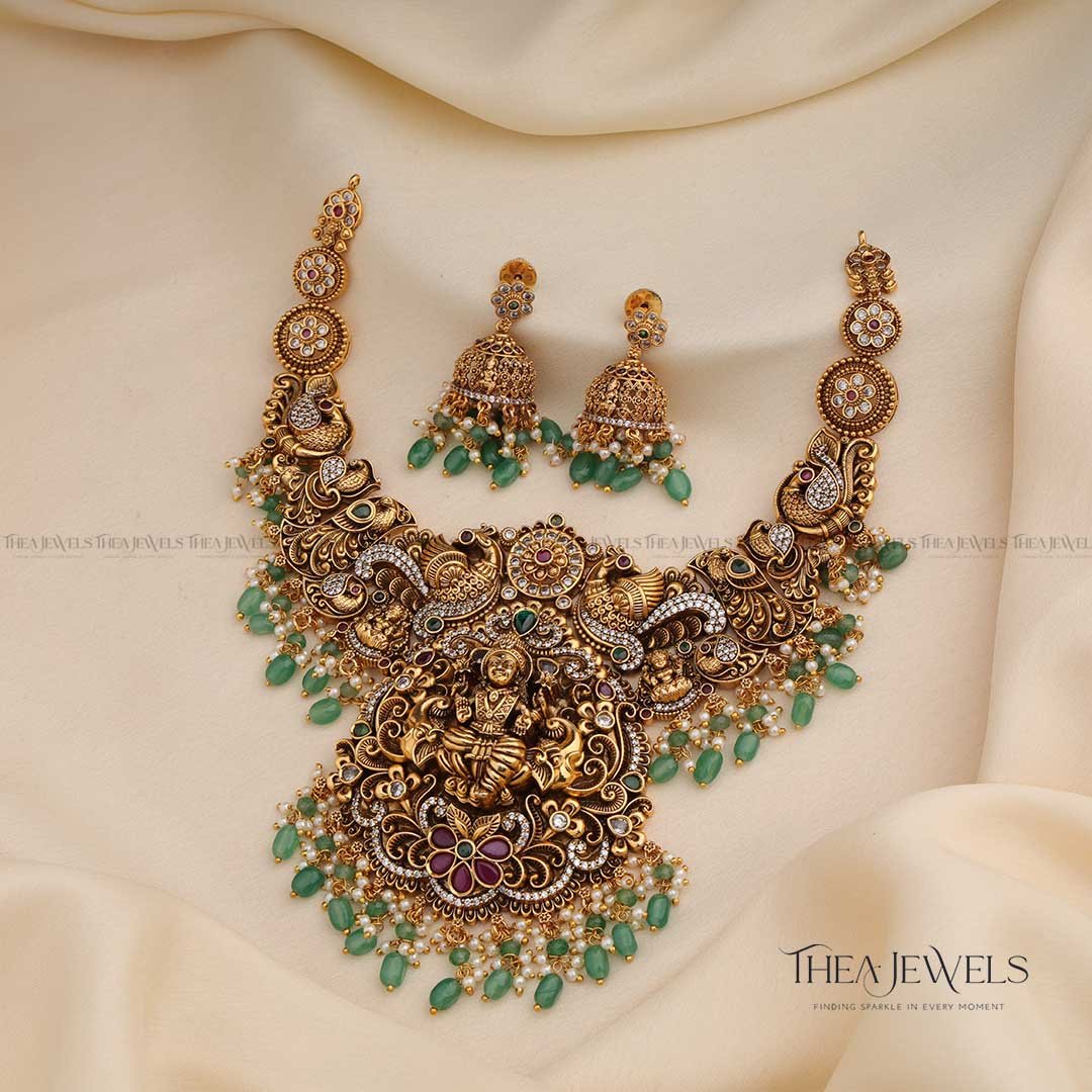 - Product Finish : Antique Gold Finish, Red Stones, Green Stones, White Stones, Green Beads, Pearls