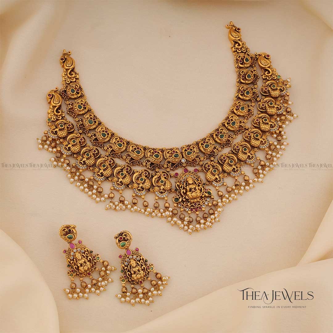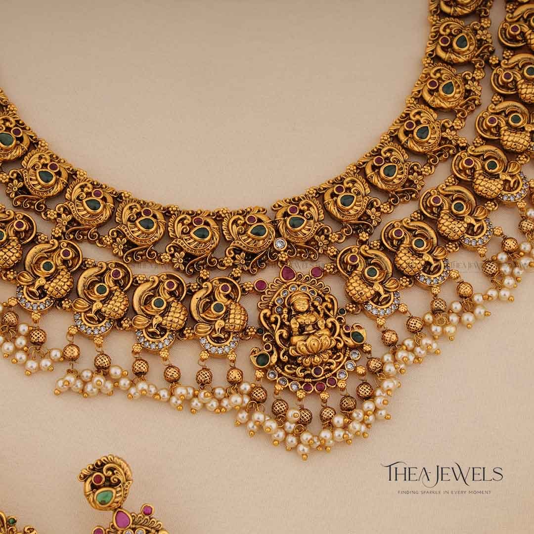 - Product Finish : Antique Gold Finish, Premium Detailing and Intricate Workmanship, Green Stones, White Stones, Red Stones, Pearls, Gold Beads