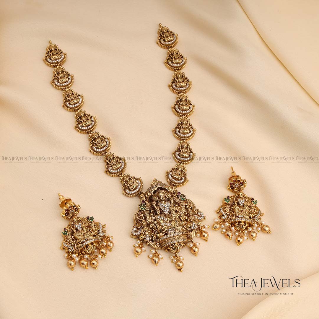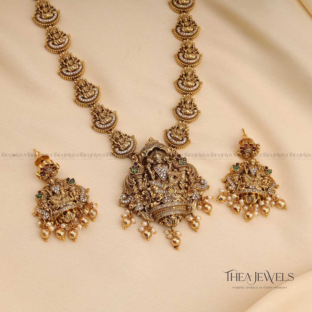 - Product Finish : Antique Gold Finish, Premium Detailing and Intricate Workmanship, White Stones, Gold Beads