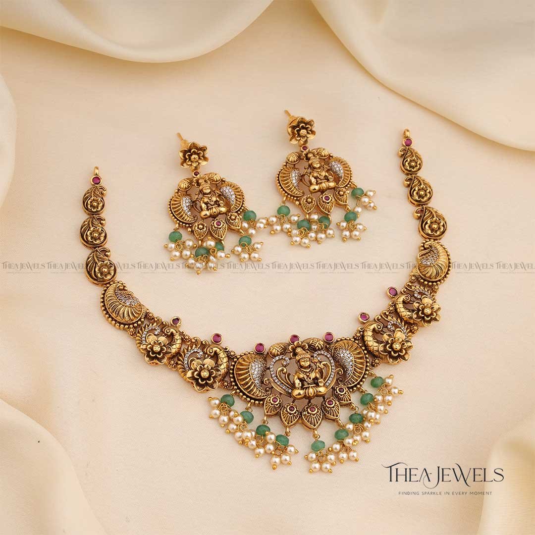 - Product Finish : Antique Gold Finish, Red Stones, Green Stones, White Stones, Green Beads, Pearls