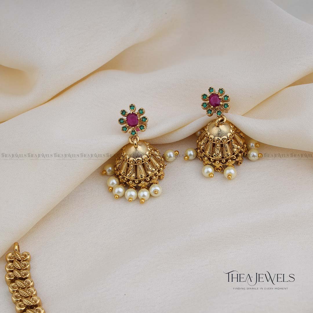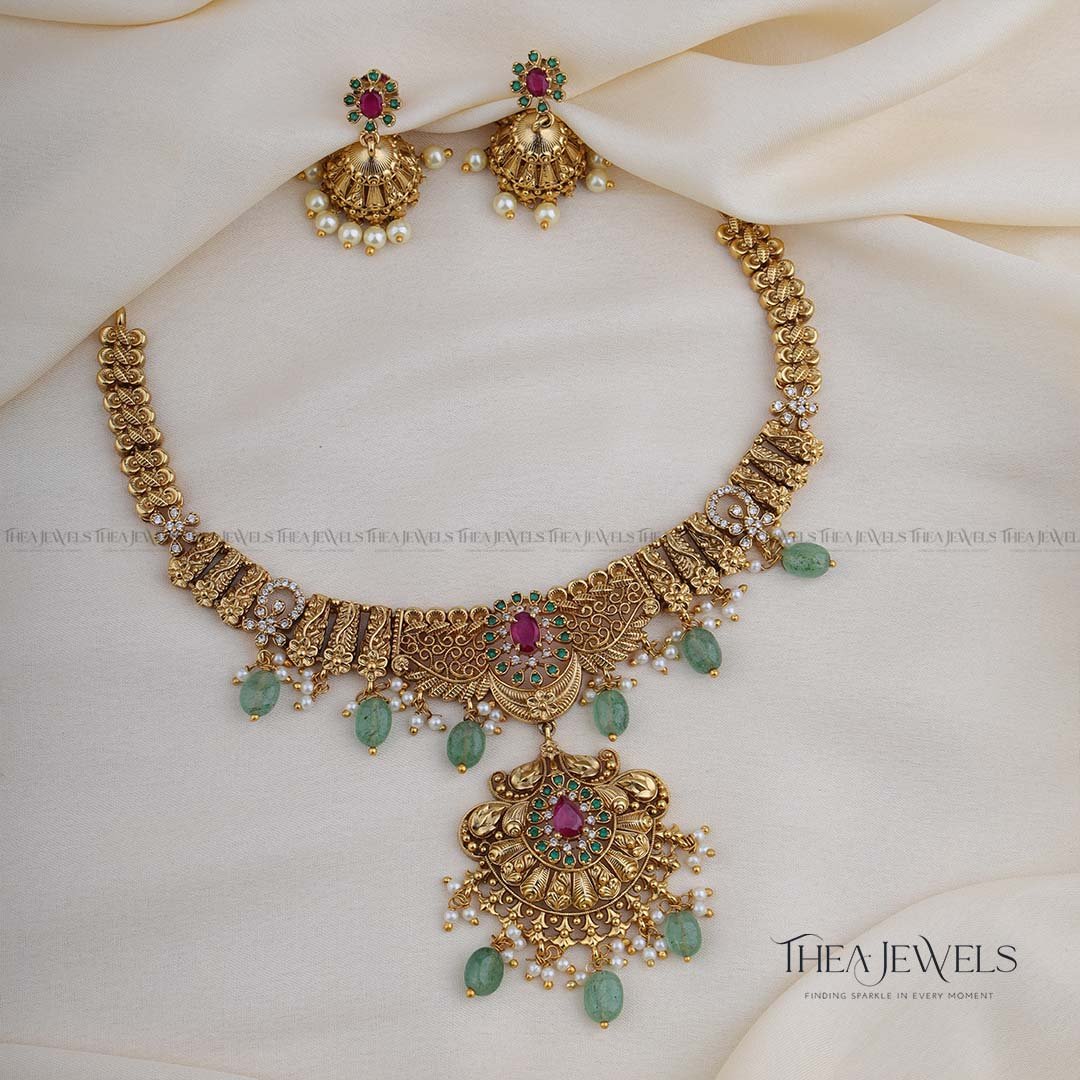 - Product Finish : Antique Gold Finish, Red Stones, White Stones, Green Stones, Pearls, Green Beads