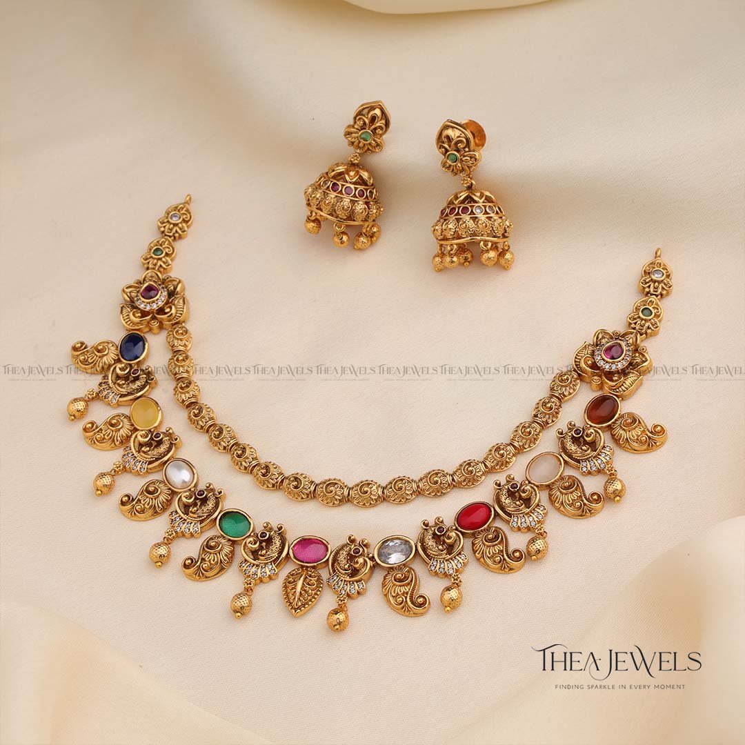 - Product Finish : Antique Gold Finish, Navratan Stones, Gold Beads, Red Stones, Green Stones, White Stones