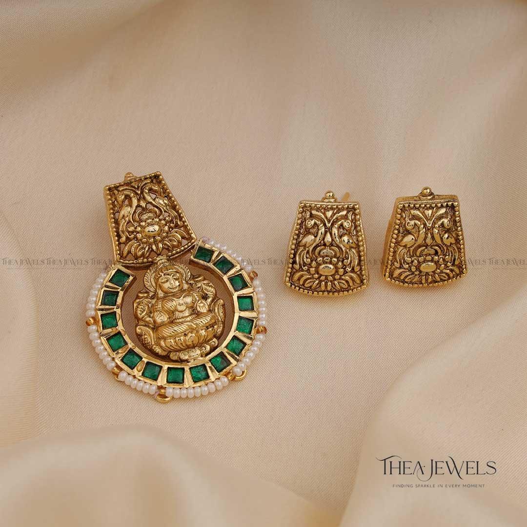 - Product Finish : Gold Antique Finish, Green Kundan Stones, Pearls