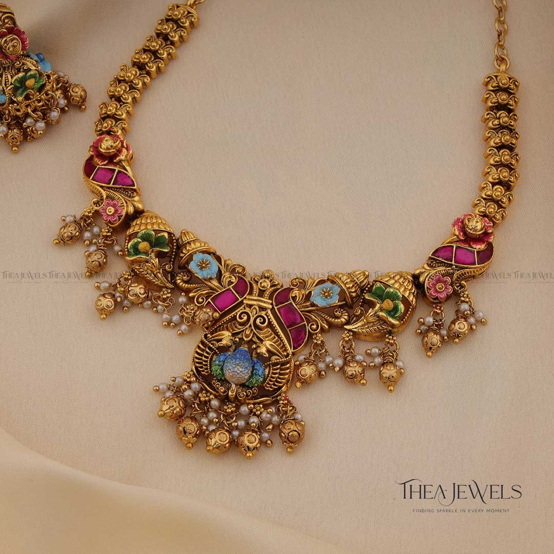 - Product Finish : Antique Gold Finish, Premium Detailing and Intricate Workmanship, Premium Enamelling Work, Red Jadau Stones, Pearls, Gold Beads