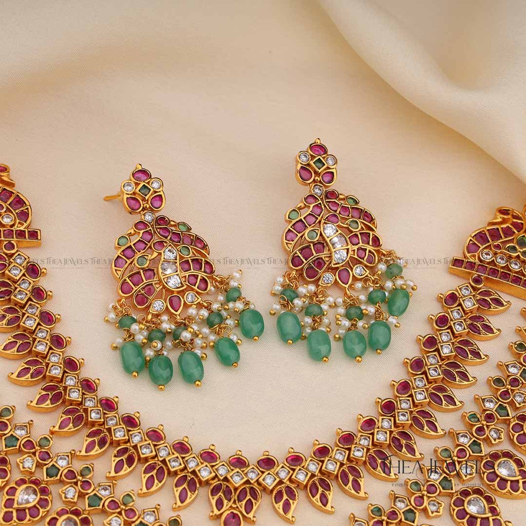 - Product Finish : Antique Gold Finish, Red Stones, Green Stones, White Stones, Green Beads, Pearls