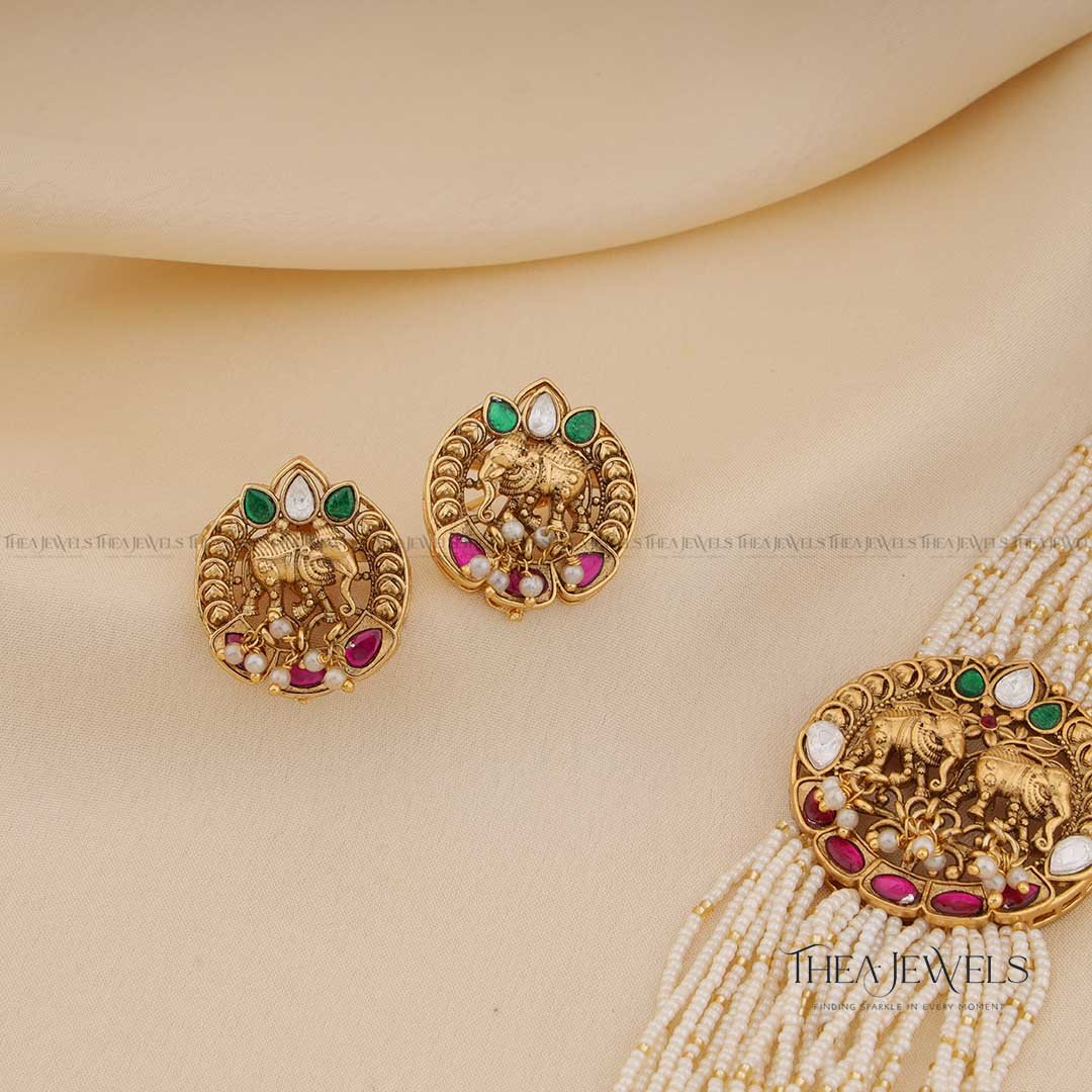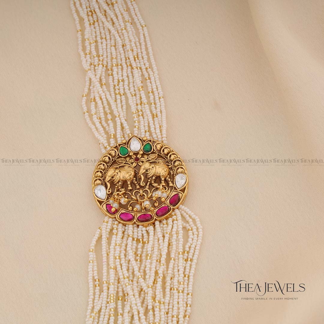 - Product Finish : Antique Gold Finish, Red Stones, Green Stones, White Stones, Gold Beads, Pearls