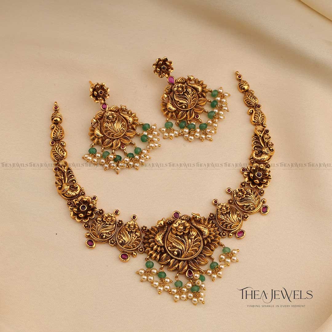 - Product Finish : Antique Gold Finish, Red Stones, Green Stones, Green Beads, Pearls