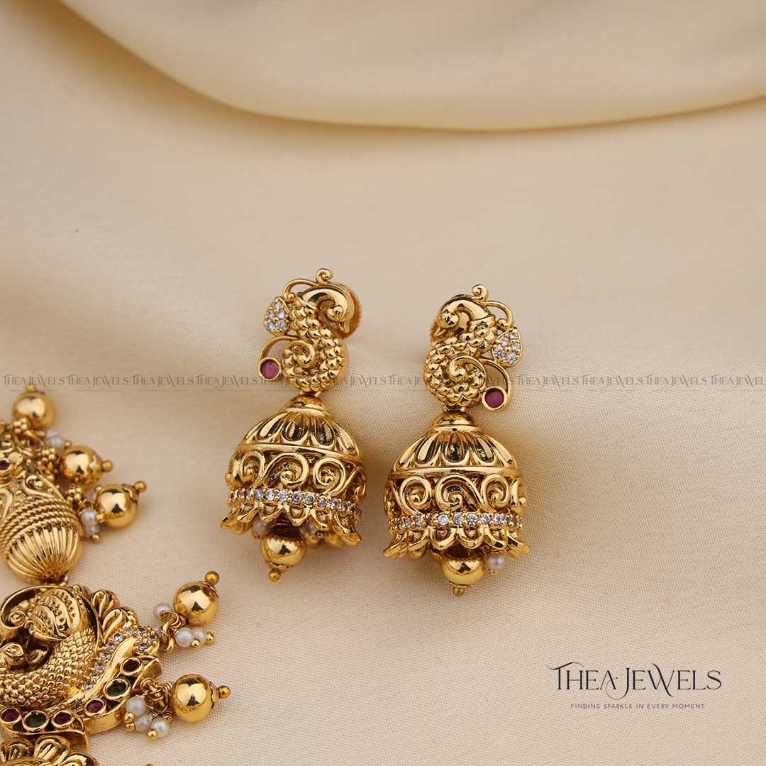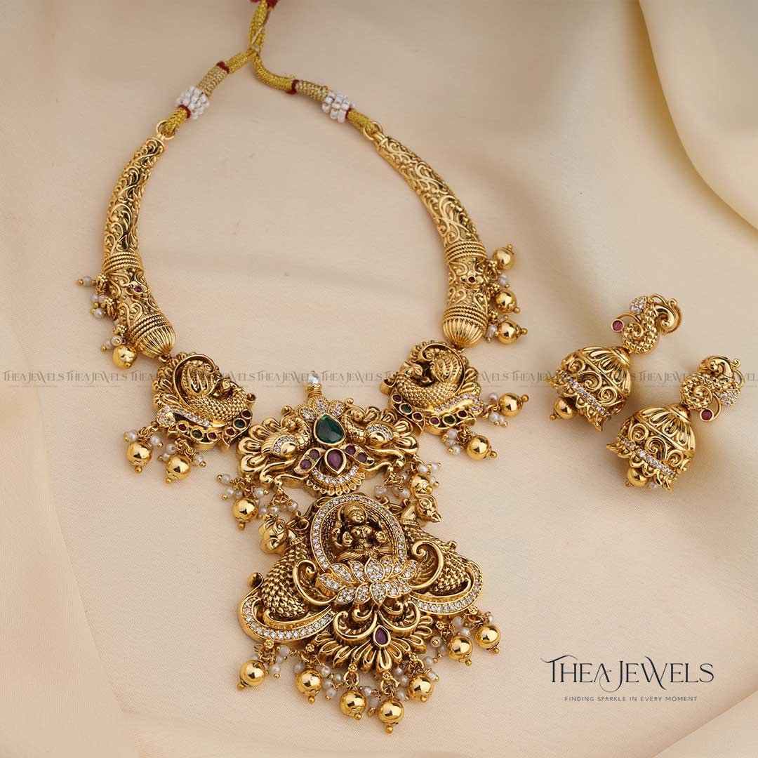 - Product Finish : Antique Gold Finish, Red Stones, Green Stones, White Stones, Gold Beads, Pearls